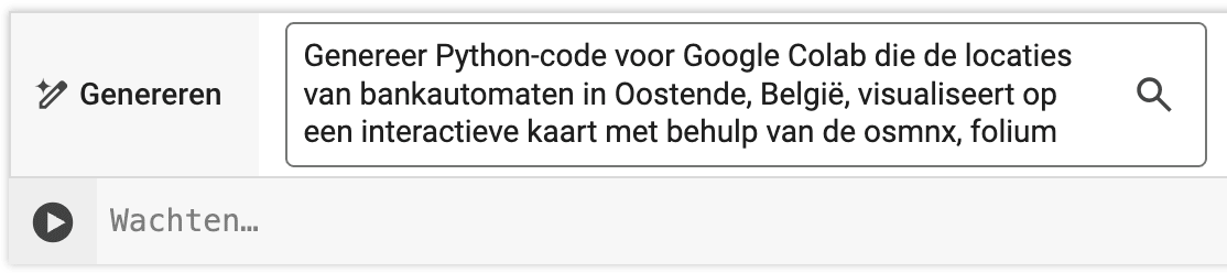 Stel je voor: het gemeentebestuur wil dat iedere burger in een straal van 300 meter toegang heeft tot een bankautomaat. Toegang tot cashgeld is immers een basisrecht, redeneert de schepen van Lokale Economie. De GIS-ambtenaar is op verlof en jij moet een analyse uitvoeren om nieuwe potentiƫle locaties voor bankautomaten in kaart te brengen. Hoe kan Google Colab daarbij helpen?